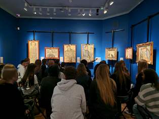Następnie grupa odwiedziła Muzeum Narodowe, gdzie wzięła udział w lekcji muzealnej poświęconej malarstwu Młodej Polski. Zajęcia umożliwiły uczestnikom bezpośredni kontakt ze sztuką i pogłębienie znajomości epoki.