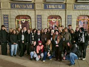 W dalszej części programu uczniowie zatrzymali się przy sklepie Wokulskiego, znanym z powieści „Lalka” Bolesława Prusa, co stanowiło interesujące nawiązanie do literatury polskiej.
